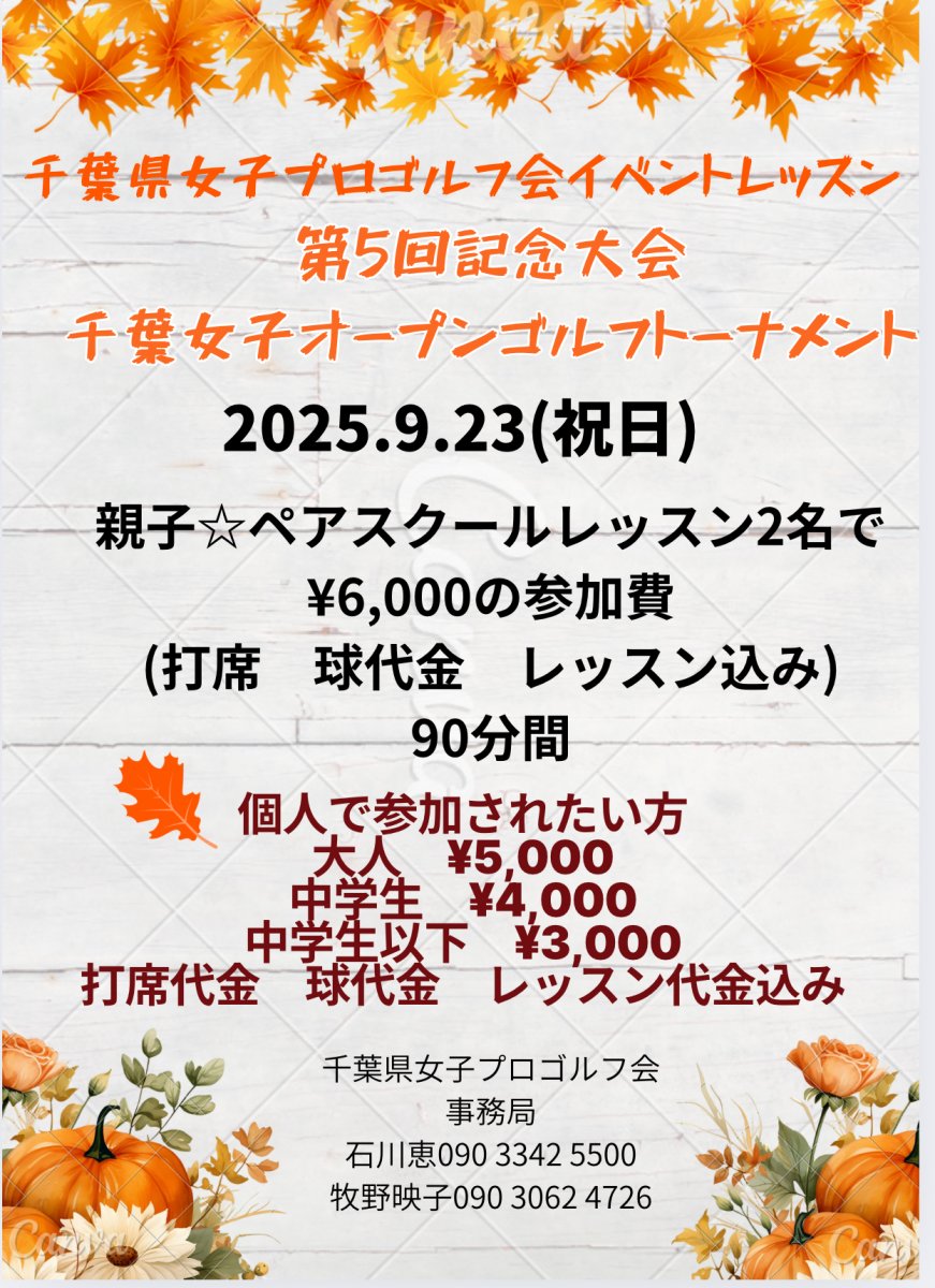 9月23日(祝)に誉田ゴルフセンターで千葉県女子プロゴルフ会主催のイベントレッスンが開催されます。